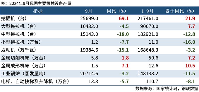 总体来看,2024年1-9月,我国主要机械设备产量表现不一。其中,挖掘机产量增长亮眼,小型拖拉机产量下降明显。