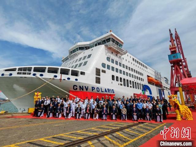 10月24日,由中国船舶集团有限公司旗下广船国际有限公司为地中海航运集团(MSC)旗下客渡轮运营商Grandi Navi Veloci(GNV)量身打造的一艘现代化大型绿色豪华客滚船——MSC/GNV1500客/3100米车道豪华客滚船“GNV Polaris(GNV·北极星)”号在广州南沙命名交付。