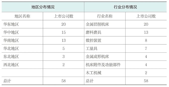 2024年度行业上市公司,较2023年新增一家(乔锋智能),减少一家(600243),总数仍为58家。其中,深交所主板23家,创业板22家;上交所主板4家,科创板9家。行业上市公司的具体地区和行业分布情况见表1。