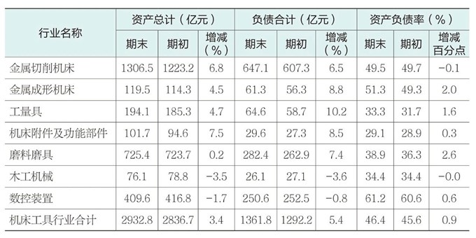 截至2024年末,行业上市公司的资产总计为2932.8亿元,较年初增长3.4%。负债合计为1361.8亿元,较年初增长5.4%;其中合同负债为141.5亿元,较年初下降5.6%。资产负债率为46.4%,较年初增长0.9个百分点,较年初增长的企业占比58.6%,较年初下降的企业占比41.4%。总体上负债增长快于资产增长,资产负债率增长。各分行业2024年的资产负债情况见表2。