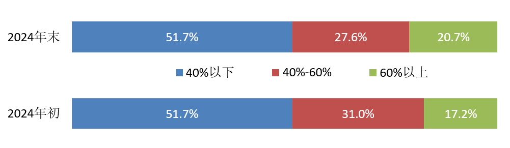 2024年,行业上市公司的利润率(利润率=利润总额/营业收入)为3.3%,同比下降4.5个百分点。其中,42家同比下降,占72.4%;16家同比增长,占27.6%。