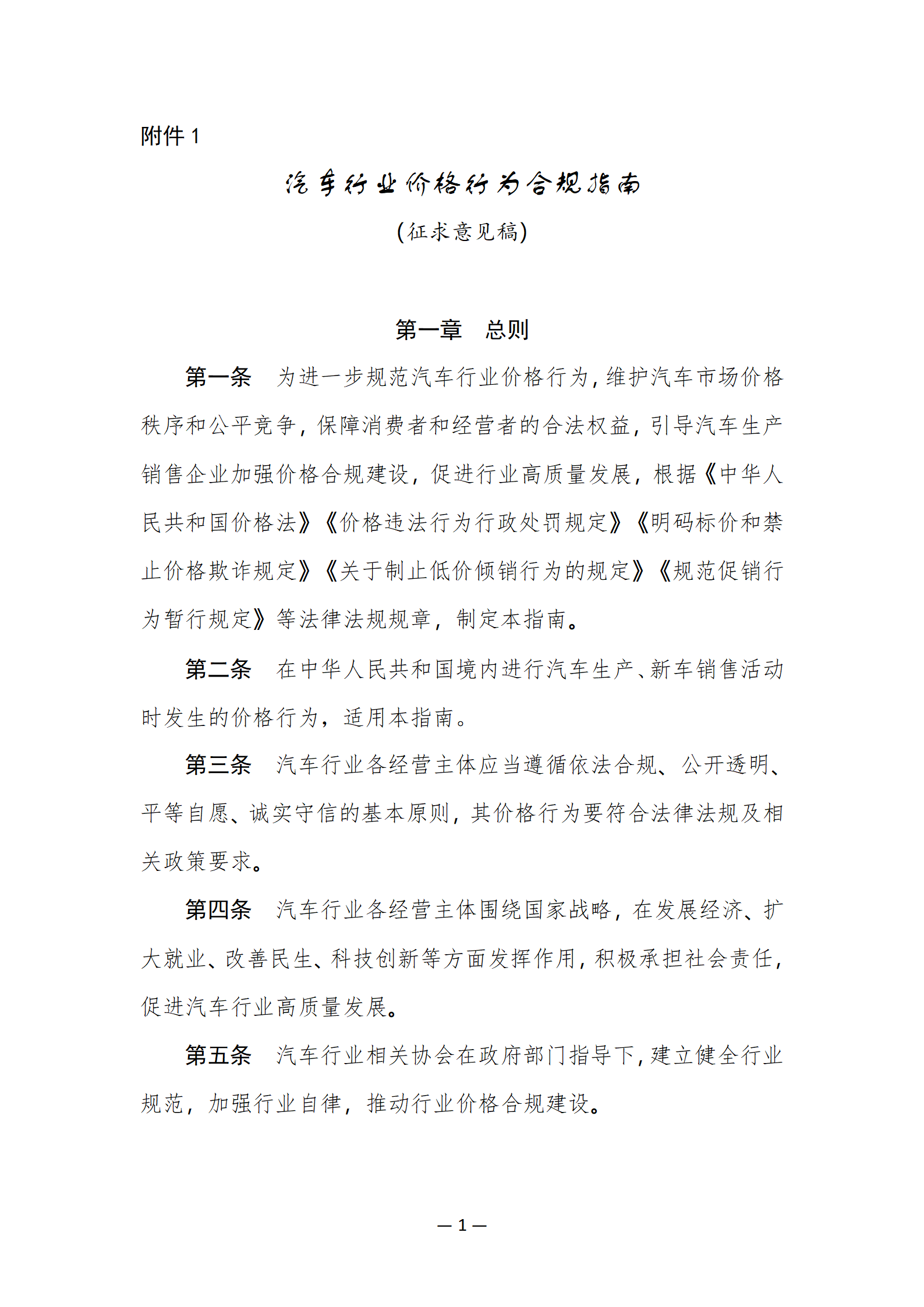 附件:1.汽车行业价格行为合规指南(征求意见稿)
