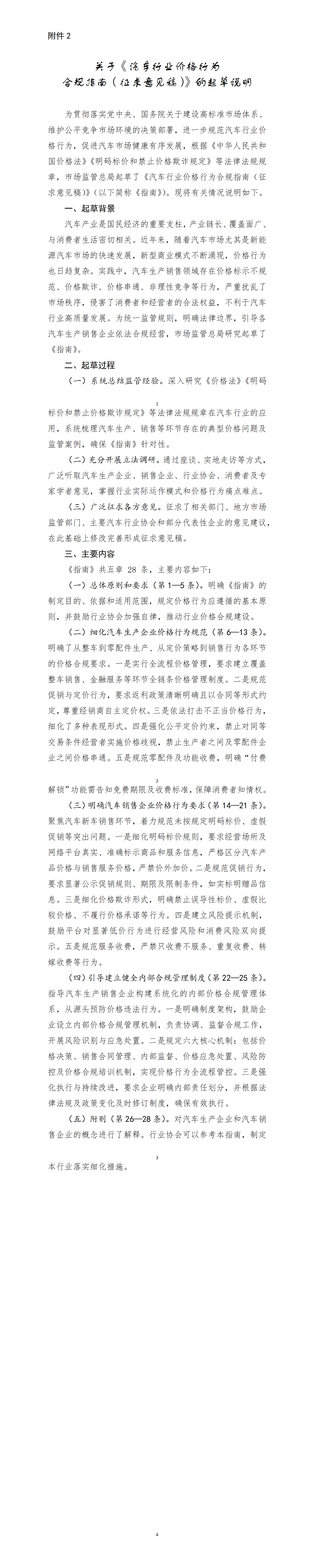 2.关于《汽车行业价格行为合规指南(征求意见稿)》的起草说明