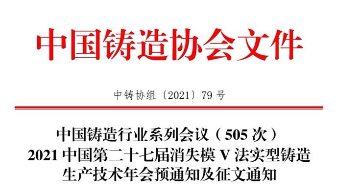 2021中国第二十七届消失模V法实型铸造生产技术年会预...