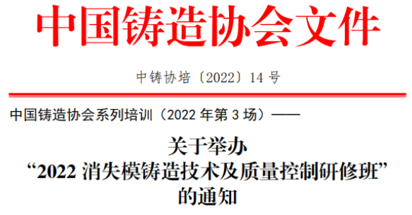 关于举办“消失模铸造技术及质量控制研修班”的通知