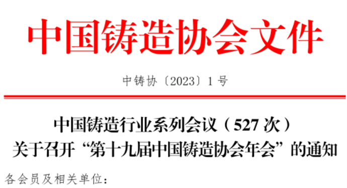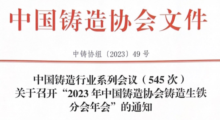 关于召开“2023年中国铸造协会铸造生铁分会年会”的通知