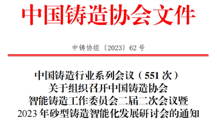 关于组织召开中国铸造协会智能铸造工作委员会二届二次...