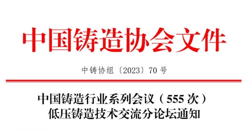 中国铸造行业系列会议(555 次)低压铸造技术交流分论坛...