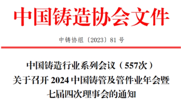 关于召开2024中国铸管及管件业年会暨七届四次理事会的...