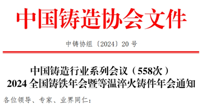 2024全国铸铁年会暨等温淬火铸件年会通知