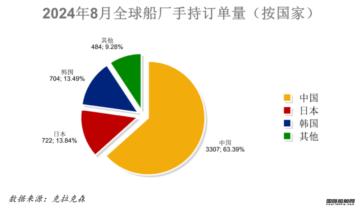 全球手持订单5217艘,中国船厂3307艘占全球市场份额的63.39%