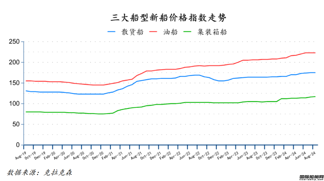 散货船和油船新船价格持平,集装箱船价格上升