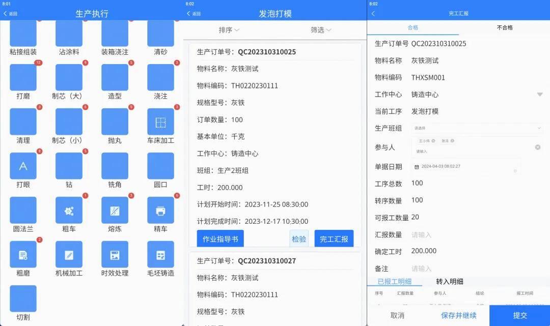 通过PDA或现场终端进行及时报工,系统实时汇总最新的报工数据,对计划执行情况进行实时跟踪、预警、报警,并与质检管理关联,保证过程质量严格受控;