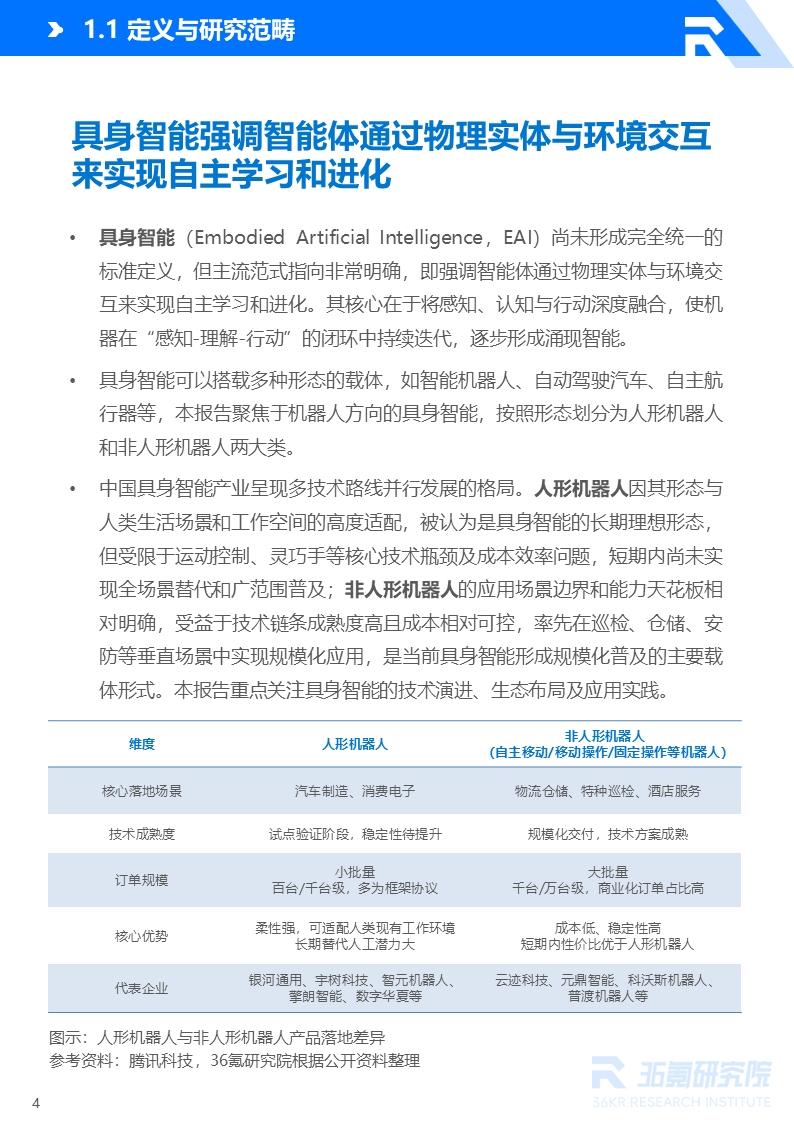 当前,在政策引领、技术突破与市场需求的共振驱动下,中国具身智能产业正迈入快速发展的新阶段。在此背景下,资本市场布局也日益活跃。公开资料数据显示,2025年前11个月具身智能产业融资额达到334.73亿元,是2024年同期的4倍;截至2025年12月21日,全年融资事件超305起,总额超过380亿元,参与的投资机构数量超过600家。资本的密集涌入,充分印证了产业发展的潜力与市场信心。这种信心,根植于社会经济发展中持续涌现的明确而迫切的替代需求。随着人口老龄化加剧与劳动力结构性短缺等问题持续凸显,社会对能够替代人工、承担高风险任务并提升产线效率的智能化解决方案需求日益迫切。传统自动化设备受限于固定场景与预设程序,难以适应柔性制造、人机协作等动态复杂环境,产业升级面临核心瓶颈。为突破这一局限,以人形机器人为代表的具身智能正在加速演进,逐步形成具备高阶认知能力的“感知-认知-决策-执行”完整技术闭环,并逐步走向规模化量产,以更好地适应多样化场景需求。由此,具身智能产业的发展主线已从技术攻关延伸至生态构建与商业闭环,标志着产业正式进入价值兑现的关键阶段。