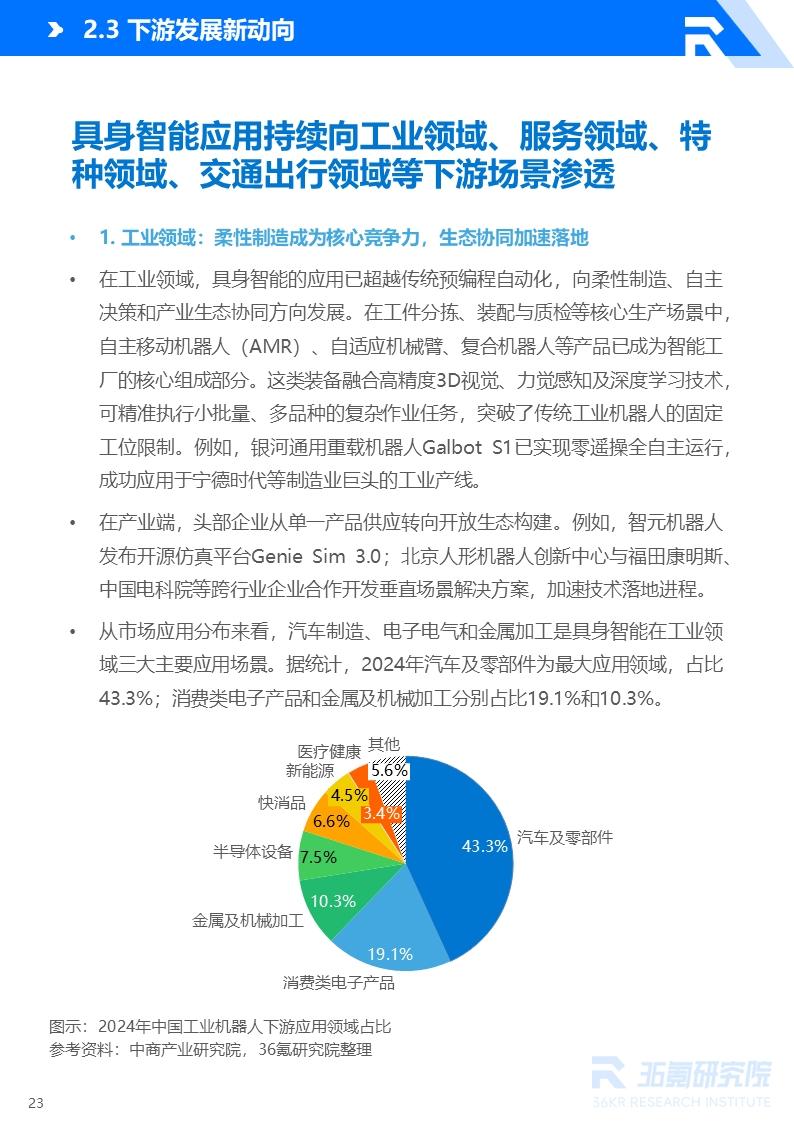 - 具身智能在工业领域、服务领域、特种领域、交通出行领域等下游场景的应用渗透情况如何?各场景的落地逻辑与成熟度有何差异?