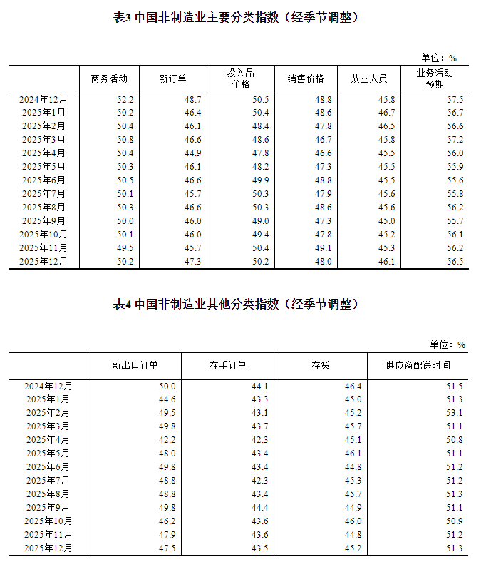 12月份,非制造业商务活动指数为50.2%,比上月上升0.7个百分点,重返扩张区间。