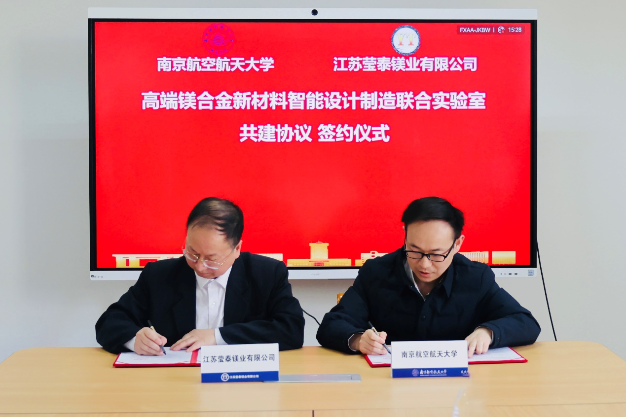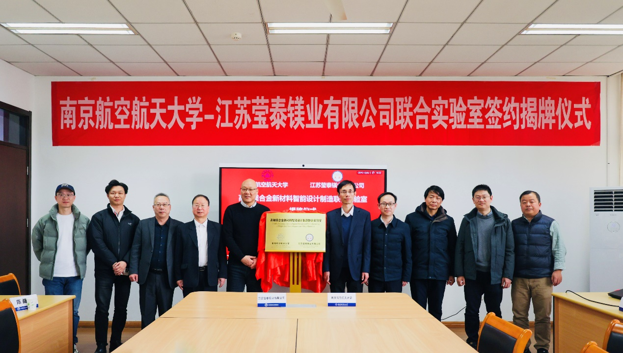 近日,南京航空航天大学-江苏莹泰镁业有限公司“高端镁合金新材料智能设计制造联合实验室”签约揭牌仪式在南京航空航天大学机电学院成功举行。南通市如东经济开发区(高新区)管委会副主任曹金泽,江苏莹泰镁业有限公司总经理董飞、副总经理陈巍峰,机电学院党委书记刘虎、院长傅玉灿,机电学院航空宇航制造工程系班子成员张臣、戴宁、董曦曦、鲍益东等参加了签约揭牌仪式。