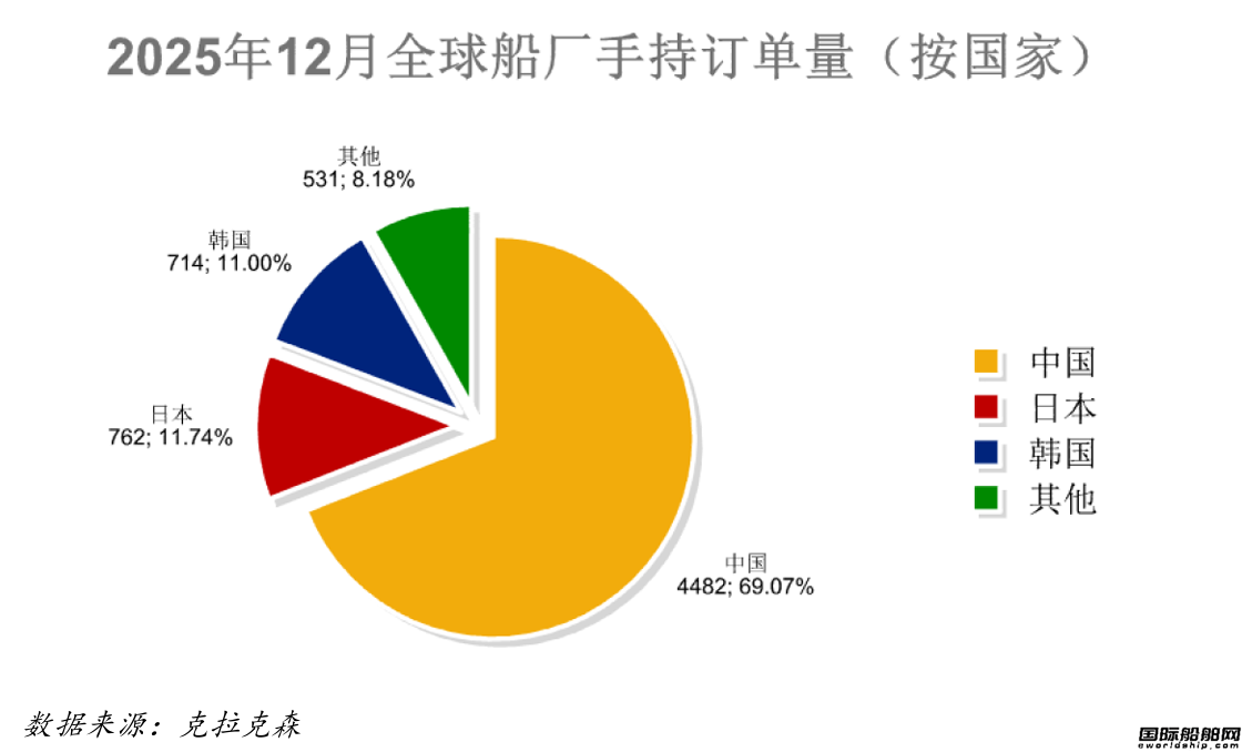 全球手持订单6489艘,中国船厂4482艘占全球市场份额69.07%